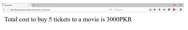 4. Cost of one movie ticket is 600 PKR. Write a script to store ticket price in a variable & calculate the