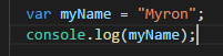 2. Declare a variable called myName & assign to it a string that represents your Full Name.